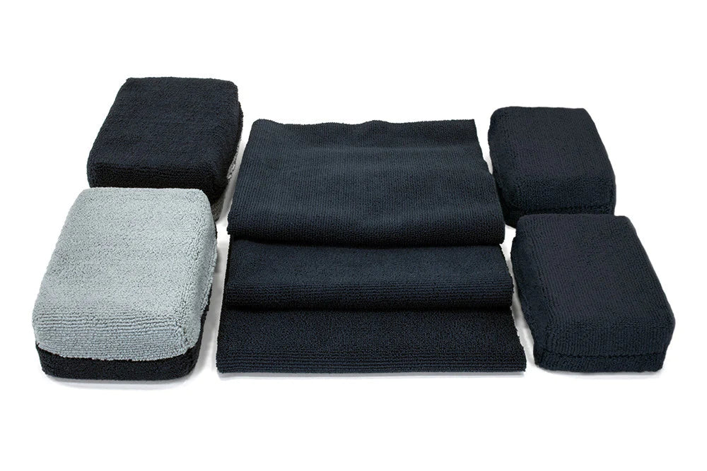 The Black Microfiber Towel & Tire Dressing Sponge Kit Includes: